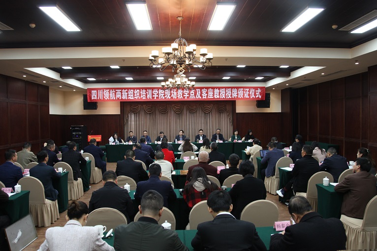 11:00分,在麓棠溫泉會(huì)議中心,四川領(lǐng)航兩新組織培訓(xùn)學(xué)院現(xiàn)場教學(xué)點(diǎn)及客座教授授牌頒證儀式正式開始,在綿竹市委常委、組織部部長、市委兩新工委書記李偉同志致辭之后,由德陽市委“兩新”工委專職副書記張興鴻、四川領(lǐng)航兩新組織培訓(xùn)學(xué)院常務(wù)副院長許應(yīng)船為德陽市23個(gè)現(xiàn)場教學(xué)點(diǎn)授牌并頒發(fā)“特聘教授”、“兩新智庫”研究員聘書。張書記要求被授予現(xiàn)場教學(xué)點(diǎn)的兩新組織要珍惜榮譽(yù)、搶抓機(jī)遇、乘勢而上,要充分發(fā)揮政治引領(lǐng)、思想引領(lǐng)、實(shí)踐引領(lǐng)作用,為推動(dòng)經(jīng)濟(jì)社會(huì)高質(zhì)量發(fā)展貢獻(xiàn)兩新力量。