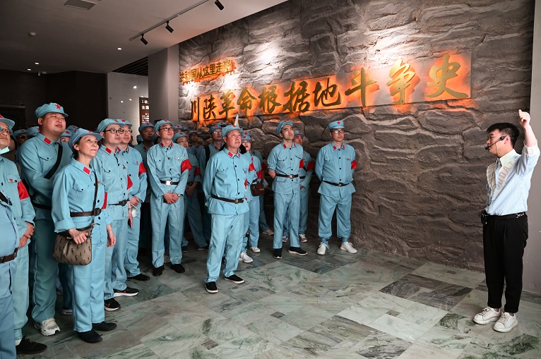 5月8日上午,集團領(lǐng)導(dǎo)、全體黨員、中層以上干部身著紅軍服,來到位于巴州區(qū)的川陜革命根據(jù)地博物館,“12萬巴山兒女參加紅軍,4.8萬人英勇犧牲......”大家跟隨講解員仔細聆聽中國工農(nóng)紅軍第四方面軍將士的豐功偉績,感受他們堅定革命信仰、勇往直前、不畏犧牲的革命精神。“我志愿加入中國共產(chǎn)黨,擁護黨的綱領(lǐng)......”在川陜革命根據(jù)地博物館文化廣場,全體黨員在集團黨委書記周述軍的帶領(lǐng)下整齊列隊,高舉右拳、莊嚴(yán)重溫入黨誓詞,更加堅定“聽黨話、跟黨走”的信念。