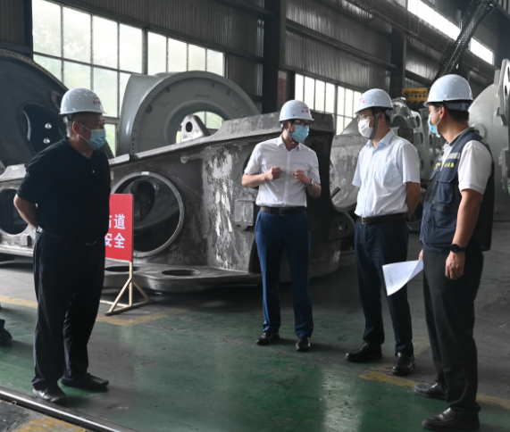 9月30日下午,中共綿竹市委書記王宏一行到仟坤集團鑫坤機械檢查指導節(jié)前安全生產(chǎn)工作及疫情防控措施落實情況。集團董事長謝世千及黨委書記、副總裁周述軍陪同檢查。王宏書記一行首先來到鑫坤機械重機車間實地查看車間運行情況,聽取了周述軍同志關(guān)于車間安全環(huán)保管理、疫情防控等方面工作匯報。