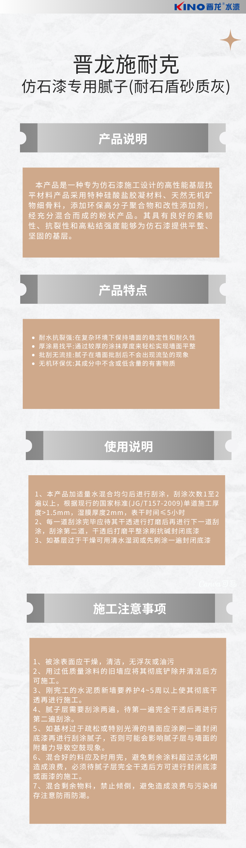 晉龍施耐克·仿石漆專用膩子耐石盾砂質灰