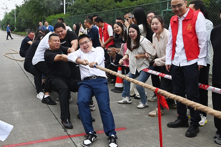 9:00,趣味運(yùn)動(dòng)會(huì)在集團(tuán)總裁謝澤波宣布正式開始中拉開帷幕,7支隊(duì)伍匯聚在比賽場地,肌肉賁張,目光堅(jiān)定,汗水和壯志交織。當(dāng)裁判一聲令下,繩索緊繃,地面震動(dòng),隊(duì)員們?nèi)缑瞳F般拼命地拉扯,拔河繩上傳來激烈的摩擦聲,空氣中彌漫著緊張的氛圍。觀眾席上的吶喊聲與助威聲震耳欲聾,互不相讓,每一刻都充滿了激情和決心。經(jīng)過多輪角逐鑫坤葉片代表隊(duì)以力拔山兮之勢奪得冠軍。