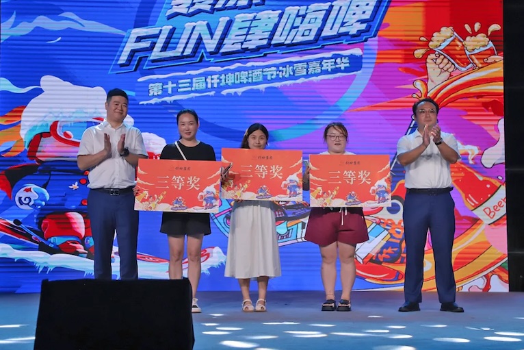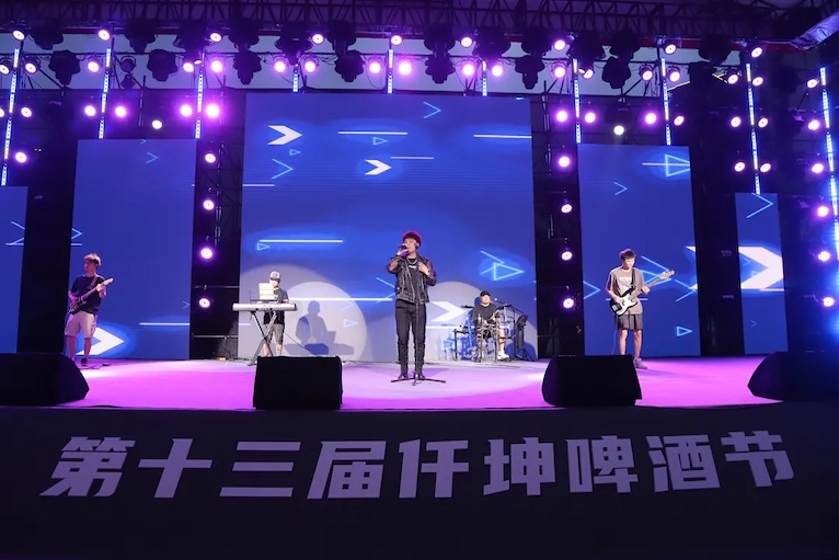 8月9日19:30,主持人登場進行了簡短的儀式后,通過視頻連線貴州安順啤酒節(jié)分會場,共同見證仟坤啤酒節(jié)開幕的盛況!首先是由綿竹市副市長陳軍代表綿竹市政府,向來自四面八方的來賓們表示最熱烈的歡迎。陳軍副市長表示,仟坤集團深耕綿竹24 年,推動了綿竹住房建設和物業(yè)管理水平的不斷提升,集團還為學子頒發(fā)獎學金,獲政府高度評價。啤酒節(jié)已是13 屆,是夏日盛會,并誠邀綿竹、安順啤酒節(jié)會場的所有來賓開懷暢飲,宣布第十三屆仟坤啤酒節(jié)正式啟幕!