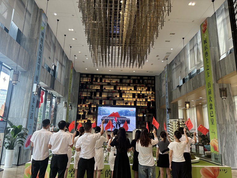 仟坤集團(tuán)黨委積極響應(yīng)號(hào)召,迅速組織開展觀看活動(dòng)。集團(tuán)總裁謝澤波帶領(lǐng)集團(tuán)領(lǐng)導(dǎo)層及總部員工集中在集團(tuán)一樓會(huì)議室收看直播。集團(tuán)各分(子)公司、項(xiàng)目部,通過(guò)集中觀看、手機(jī)直播等多種形式同步參與。讓全體仟坤職工在共同回望民族抗戰(zhàn)歷史的過(guò)程中,見證國(guó)之盛典的歷史時(shí)刻。