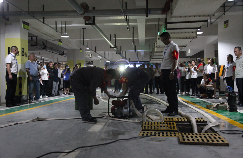 本次防洪防汛演練主要分為險(xiǎn)情報(bào)警、疏散地下室車(chē)輛、對(duì)地下室出入口阻擋、工程組對(duì)地下室積水進(jìn)行排除、醫(yī)療救護(hù)組對(duì)受傷人員進(jìn)行醫(yī)療救助、搶險(xiǎn)組搶救地下室漫水車(chē)輛、消殺組對(duì)地下室過(guò)水區(qū)域整體消殺,七個(gè)演練科目。演練過(guò)程中各個(gè)小組處置險(xiǎn)情反應(yīng)迅速、配合默契、處置有力,且全體參演人員態(tài)度端正,嚴(yán)肅認(rèn)真,最大限度降低危急情況造成的危害。